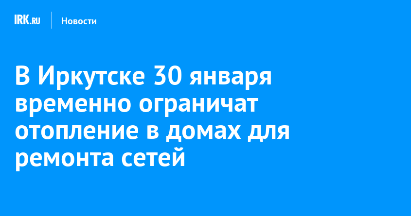 30 января в некоторых домах Иркутска временно приостановят подачу тепла. Отключение связано с плановыми диагностическими и ремонтными работами на тепловых сетях. Энергетики планируют устранить несколько потенциально аварийных участков.
