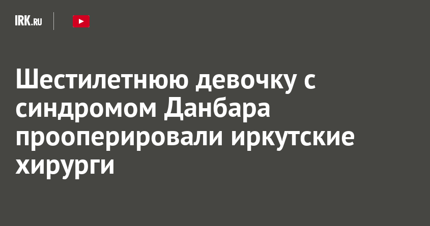 Хирурги Иркутской детской областной клинической больницы выполнили высокотехнологичную операцию шестилетней девочке — рассечение срединной дугообразной связки при синдроме Данбара. О вмешательстве в соцсетях рассказал главный врач больницы Юрий Козлов. От отметил, что такие операции выдвигают госпитали в число наиболее значимых и прогрессивных лечебных учреждений.
