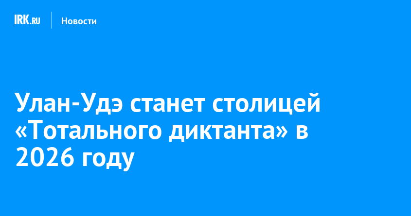 В 2026 году Улан-Удэ станет столицей ежегодной образовательной акции «Тотальный диктант». На это звание также претендовали Псков, Обнинск и Чита. Победу Улан-Удэ принесла презентация, которую в Москве представила PR-менеджер «Ариг Ус» Александра Доброскокина.