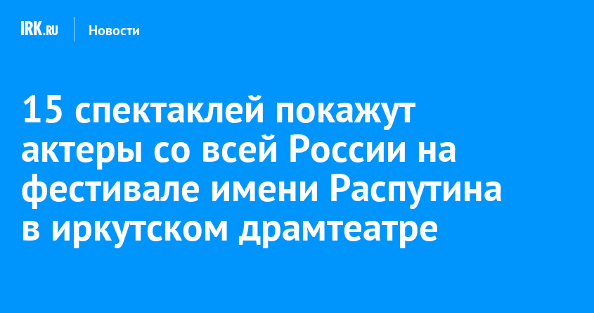 С 15 по 20 марта в Иркутске состоится Третий Всероссийский театральный фестиваль имени Валентина Распутина. В рамках мероприятия представят 15 спектаклей, которые подготовили десять профессиональных театров из разных городов России и три авторских коллектива. Об этом сообщили в пресс-службе правительства Иркутской области.