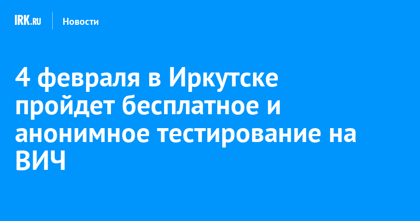 Иркутян и гостей города приглашают проверить свое здоровье в рамках выездной акции. 4 февраля 2026 года на парковке перед МУП «Центральный рынок» будет работать специальный тест-мобиль, где все желающие смогут бесплатно и анонимно сдать экспресс-анализы на ВИЧ-инфекцию, вирусные гепатиты В и С, а также сифилис.