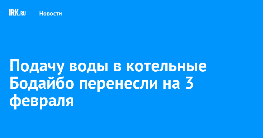 Коммунальная авария в Бодайбо произошла 30 января. Причина случившегося — локальное замерзание водопровода. Без тепла и водоснабжения остался 141 дом, где проживает 1321 человек, а также два образовательных учреждения. В городе ввели режим ЧС локального характера. Следователи возбудили уголовное дело. Возобновить подачу тепла в дома планировали 2 февраля, однако эти сроки перенесли.