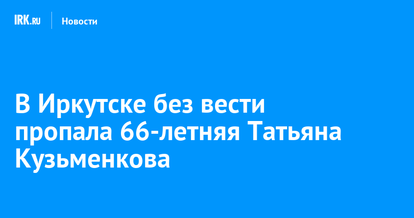 Сотрудники полиции в Иркутске разыскивают без вести пропавшую Татьяну Кузьменкову. В дежурную часть обратилась ее дочь. Она рассказала, что 66-летняя женщина ушла из дома, расположенного в микрорайоне Лесной, и с тех пор перестала выходить на связь, сообщили в пресс-службе ГУ МВД по Иркутской области.