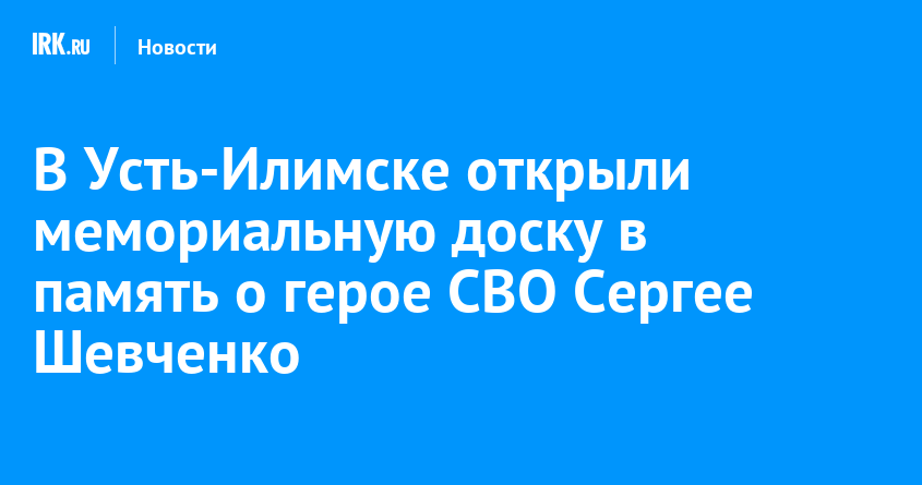 Мемориальную доску памяти погибшего участника СВО установили на фасаде школы № 5 в Усть-Илимске, где учился боец. Сергей Шевченко прошел путь от выпускника местного колледжа до мичмана Тихоокеанского флота, а в сентябре 2022 года отправился в зону спецоперации, говорит в личном телеграм-канале мэр города Эдуард Симонов.