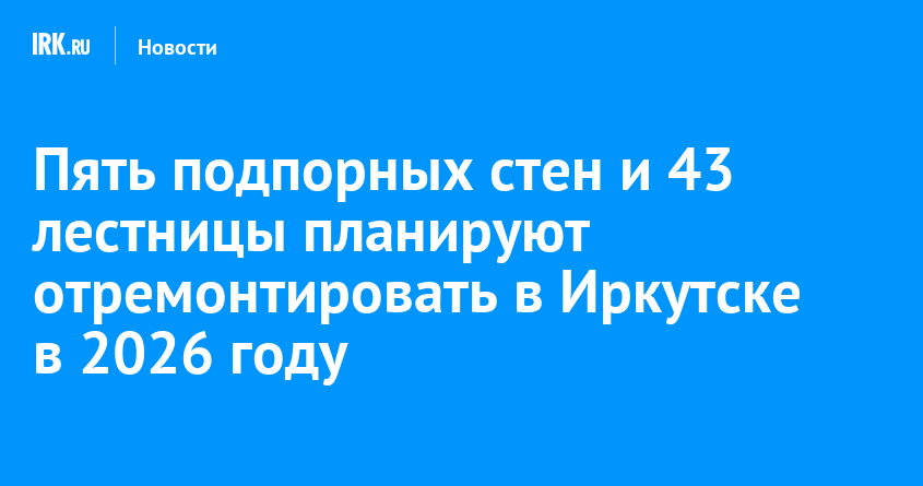 43 лестницы и пять подпорных стен планируют отремонтировать в Иркутске в этом году. Работы проведут по муниципальным программам и за счет средств фонда поддержки избирательных округов, предусмотренных в городском бюджете, сообщает пресс-служба мэрии.