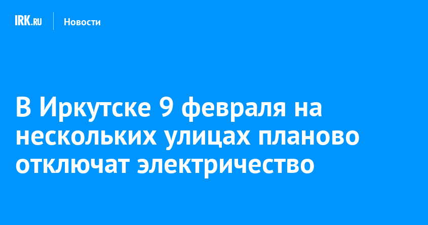 9 февраля в Иркутске запланированы временные ограничения электроснабжения в связи с проведением неотложных работ на сетях. С 09:00 до 16:00 будет прекращена подача электроэнергии по адресам: улицы Варламова (дома 59-90, 102), Дружбы (дома 29-104) и Моцарта (дома 68/1-95). С 9:00 до 18:00 электричества не будет в домах по улицам Жуковского, Звездинской, Миронова, Новокшонова, Флюкова и Чернышевского, где будет выполняться монтаж приборов учета.