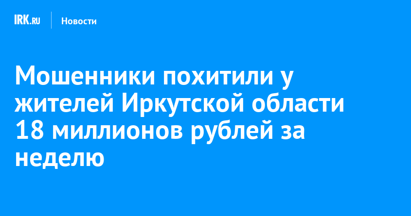 За неделю 24 жителя Приангарья перевели мошенникам более 18 миллионов рублей, сообщает пресс-служба ГУ МВД России по Иркутской области в телеграм-канале «Вас обманывают». Самую крупную сумму потеряла 59-летняя иркутянка. Аферисты похитили у нее семь миллионов рублей.