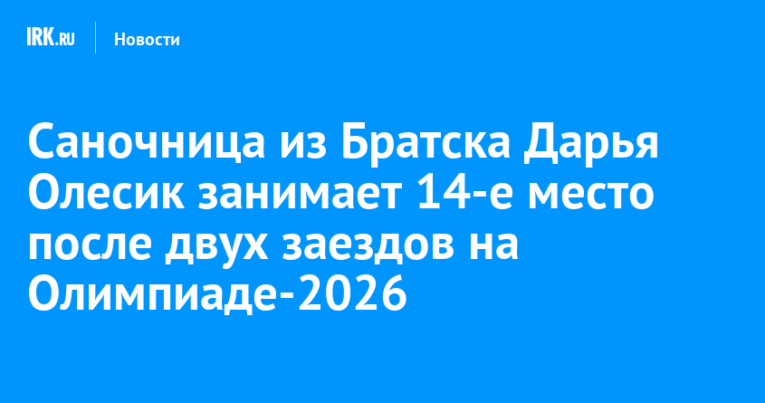 Саночница из Братска Дарья Олесик выступила в двух заездах в одиночных соревнованиях на Олимпийских играх. В сумме российская спортсменка показала результат 1.46,651, что позволило ей занять промежуточную 14-ю строчку в итоговом протоколе.