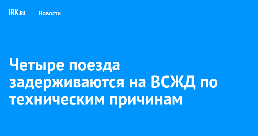 10 февраля на Восточно-Сибирской железной дороге задерживаются четыре поезда сообщением Москва — Владивосток (№2 и №10), Москва — Чита (№70) и Красноярск — Иркутск (№58). Это связано с техническими причинами, сообщили в пресс-службе ВСЖД.