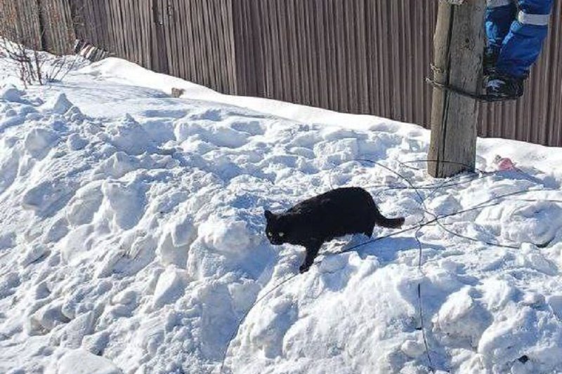 Жительница Хомутово обратилась к электрикам с просьбой помочь коту, который забрался на опору линии электропередач и не смог спуститься самостоятельно. Животное просидело на столбе более двух суток, сообщается в телеграм-канале «Свет38».