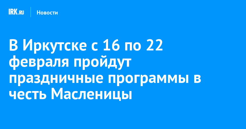 22 февраля 2026 года на площади у дворца спорта «Труд» отпразднуют Масленицу. Мероприятие пройдет с 13:00 до 16:00, сообщает пресс-служба администрации Иркутска. Еще около 35 событий состоятся в разных округах города с 16 по 22 февраля.