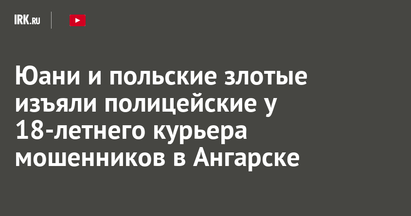 Сотрудники полиции в Ангарске задержали 18-летнего курьера мошенников, который забрал свыше миллиона рублей у 71-летнего пенсионера. При обыске у злоумышленника обнаружили доллары США, евро, польские злотые, юани, белорусские и российские рубли. В последующем деньги вернут потерпевшему, сообщили в пресс-службе ГУ МВД по Иркутской области.