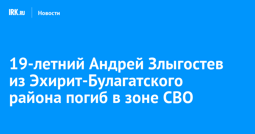Военнослужащий из Эхирит-Булагатского района Андрей Злыгостев погиб в ходе проведения специальной военной операции. Ему было 19 лет, сообщил в соцсетях глава МО Геннадий Осодоев.