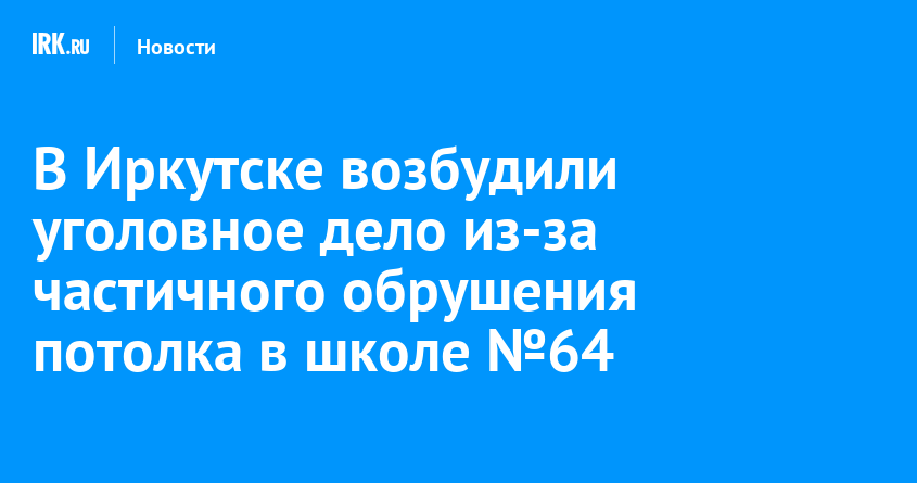 Следственный комитет по Иркутской области возбудил уголовное дело по факту обрушения потолка в школе №64. Дело завели по части 1 статьи 293 УК РФ «Халатность» после того, как информация о происшествии появилась в социальных сетях и СМИ, сообщают пресс-службы СУ СКР по региону и прокуратуры Приангарья. Следователи проводят осмотр места происшествия, допрашивают руководство образовательного учреждения и очевидцев.
