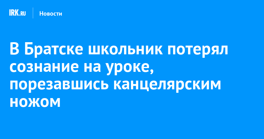 12 февраля ученик пятого класса лицея № 1 в Братске поранил руку канцелярским ножом во время урока и после этого потерял сознание. В учебное заведение вызвали врачей и родителей подростка. Медики оказали юноше помощь, сообщается в телеграм-канале «Народные новости Братска».