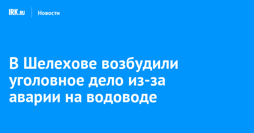 Следователи возбудили уголовное дело о халатности в связи с аварией, произошедшей на магистральном водопроводе. В результате без воды остались жители трех микрорайонов и села Баклаши, сообщили в пресс-службе СУ СКР по Иркутской области.