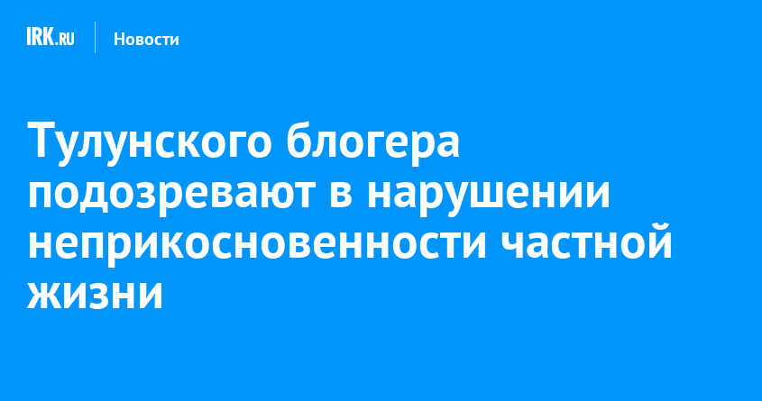 Следственный комитет возбудил уголовное дело в отношении 34-летнего блогера, жителя Тулуна. Мужчину подозревают в преступлении по части 1 статьи 137 УК РФ «Нарушение неприкосновенности частной жизни», сообщает пресс-служба СУ СК России по Иркутской области.