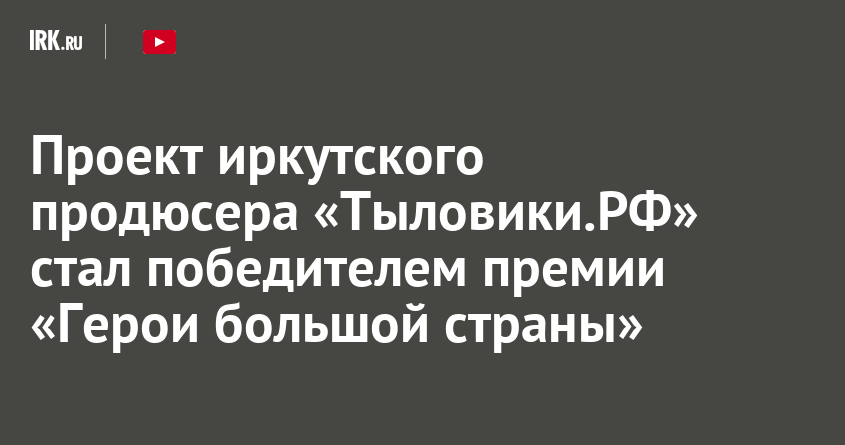 В Москве прошло награждение победителей третьей Национальной кинопремии «Герои большой страны». В номинации «Лучший короткометражный фильм» вошел историко-патриотический проект иркутского продюсера Романа Буркало «Тыловики.РФ».
