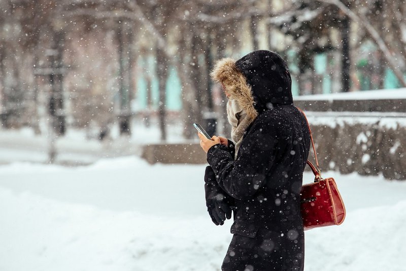 Где снегопад? Там тётка в телефон пялится