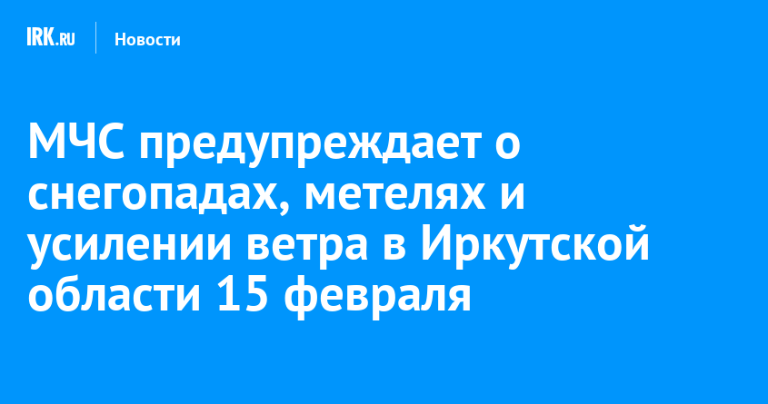 Ухудшение погоды ожидается в Иркутской области. МЧС России по региону предупреждает, что утром и днем 15 февраля местами прогнозируют сильный ветер с порывами до 18 метров в секунду, снегопады и метели. На дорогах снежный накат. Температура ночью -18... -23 градуса, при прояснении -28... -33, в западных и северо-западных районах при облачной погоде -10... -15. Днем -1... -6 градусов, в горах Восточного Саяна и южного Прибайкалья местами до +3.