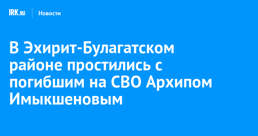 Жители Эхирит-Булагатского района простились с уроженцем деревни Хабаровск Архипом Имыкшеновым, погибшим при выполнении боевого задания в зоне проведения специальной военной операции. Мужчине было 34 года, сообщил в своих соцсетях мэр района Геннадий Осодоев.