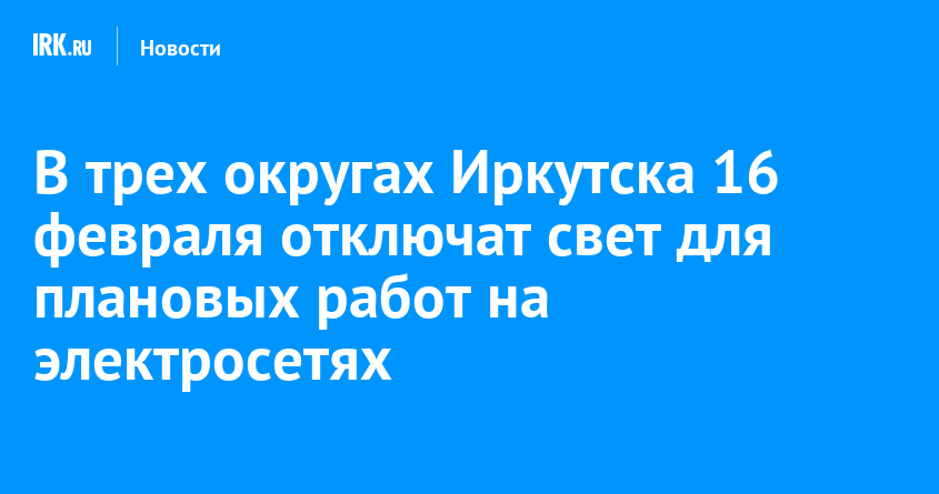 16 февраля специалисты проведут плановые работы на электросетях Иркутска. Из-за этого часть трех округов города останется без электроснабжения, сообщается в телеграм-канале «Свет38». Будут устанавливать счетчики на опоры воздушной линии электропередач, ремонтировать электрооборудование и менять трансформаторы.
