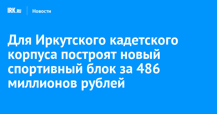 Весной 2026 года начнется строительство нового спортивно-просветительского корпуса Иркутского кадетского корпуса имени П.А. Скороходова. По словам главы минстроя региона Алексея Емелюкова, стоимость контракта составляет 486,6 миллиона рублей, а работы профинансируют в рамках нацпроекта «Молодежь и дети», сообщает пресс-служба правительства области.