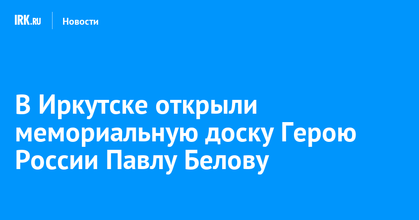Мемориальная доска в честь участвовавшего в спецоперации иркутянина Павла Белова появилась на фасаде школы № 31, где учился боец, сообщает пресс-служба администрации города. Мужчина погиб при выполнении боевого задания, его посмертно удостоили медали «Золотая Звезда» и звания Героя Российской Федерации.