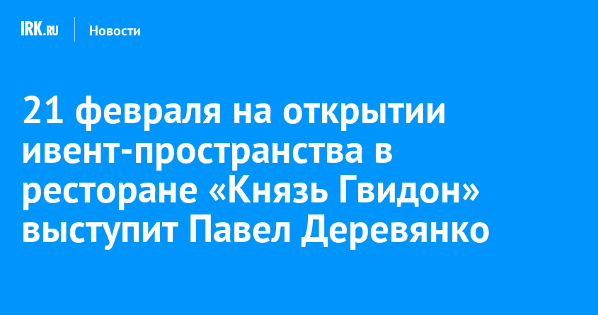 21 февраля 2026 года в Иркутске открывается новое ивент-пространство. Оно будет располагаться в ресторане «Князь Гвидон» по адресу: улица Сухэ-Батора, 18.