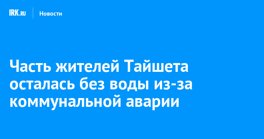 Ночью 18 февраля в южной части Тайшета произошла коммунальная авария. Без воды остались жители 195 квартала, улиц Тимирязева, Новой, Советской и Первомайской. Об этом в соцсетях сообщил мэр Тайшетского района Александр Кузин.