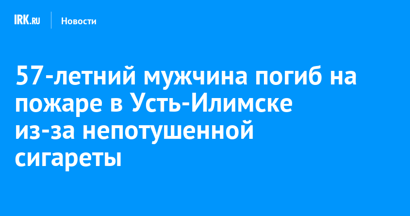 17 февраля на улице Наймушина в Усть-Илимске загорелась квартира на четвертом этаже пятиэтажки. В результате погиб 57-летний мужчина. Его тело обнаружили на кровати в одной из комнат, сообщили в пресс-службе ГУ МЧС по Иркутской области.