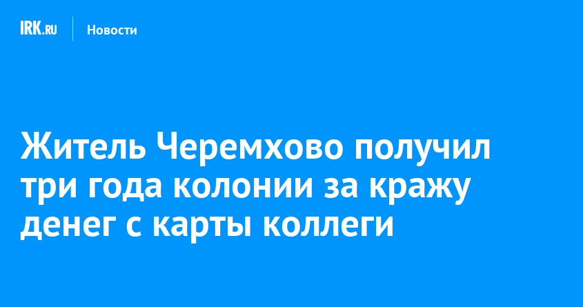 Черемховский районный суд приговорил 45-летнего местного жителя к трем годам лишения свободы в исправительной колонии общего режима за хищение средств с банковского счета. В мае 2025 года пьяный мужчина нашел карту своего коллеги и несколько раз воспользовался ей, сообщает пресс-служба прокуратуры Иркутской области.