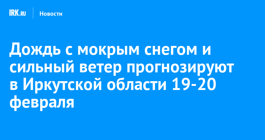 19 и 20 февраля местами по Иркутской области прогнозируют сильный ветер 15-20 метров в секунду, дождь переходящий в мокрый снег и снег. В северных районах ожидаются метели. На Байкале порывы ветра будут достигать 30-35 метров в секунду, сообщили в Иркутском Гидрометцентре.