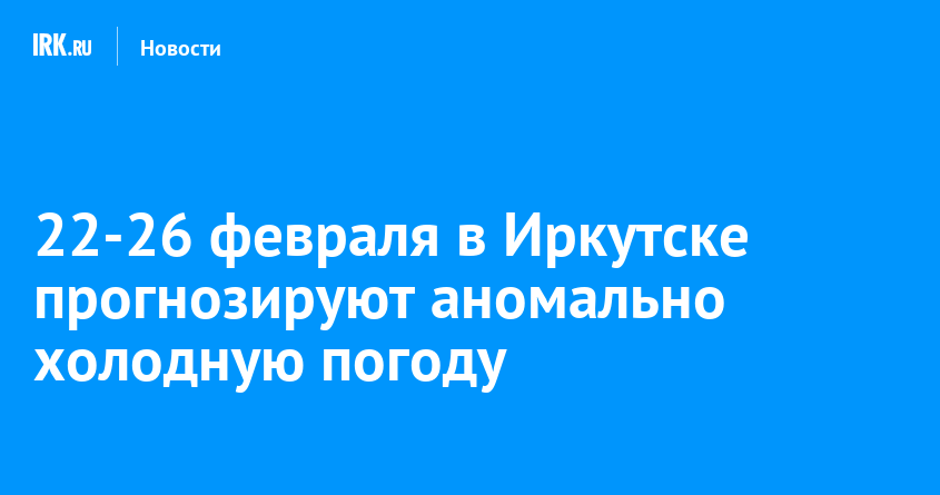 22−26 февраля в Иркутске прогнозируют аномально холодную погоду. Среднесуточная температура будет на 7-16 градусов ниже климатической нормы, сообщили в Иркутском Гидрометцентре.