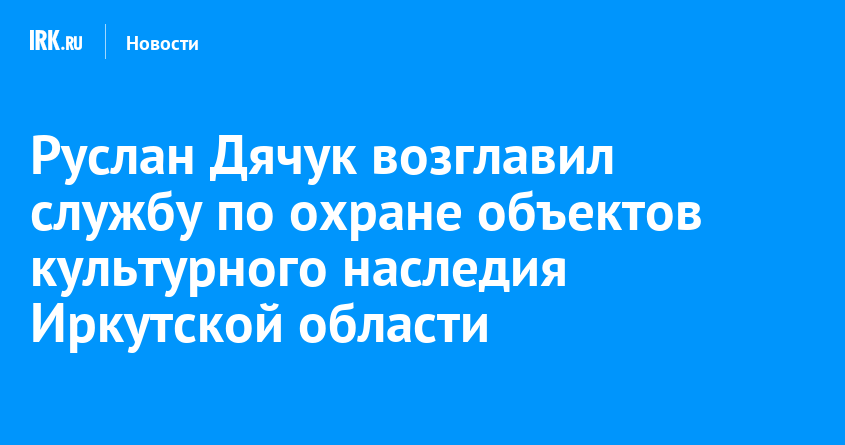 Руслана Дячука назначили руководителем службы по охране объектов культурного наследия Иркутской области. Глава региона Игорь Кобзев подписал соответствующее распоряжение, сообщили в пресс-службе ведомства.
