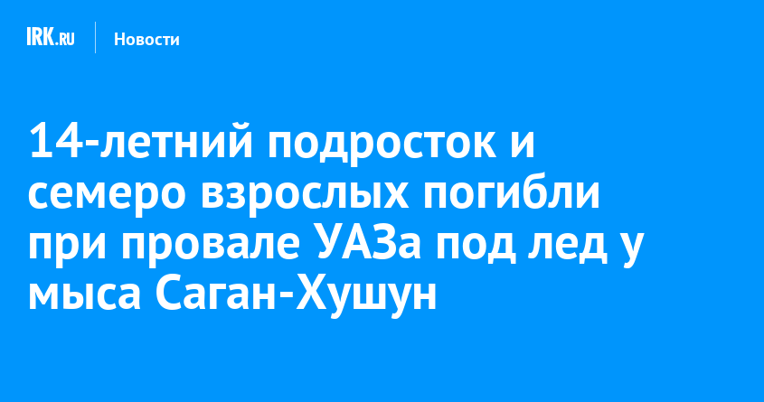 По уточненным данным, на Байкале при провале автомобиля УАЗ под лед Байкала вблизи мыса Саган-Хушун погибли восемь человек — семеро туристов из Китая, в том числе 14-летний подросток, и водитель из числа местных жителей. Один мужчина выжил. Ранее предварительно сообщалось о гибели семерых человек.