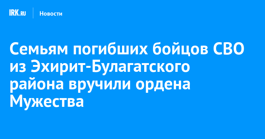 Мэр Эхирит-Булагатского района Геннадий Осодоев и социальный координатор фонда «Защитники Отечества» Александра Морохоева передали государственные награды семьям военнослужащих, проявивших отвагу в зоне проведения специальной военной операции. За мужество, героизм и самоотверженность четверо бойцов удостоены ордена Мужества посмертно, сообщил мэр Эхирит-Булагатского района в своем телеграм-канале.