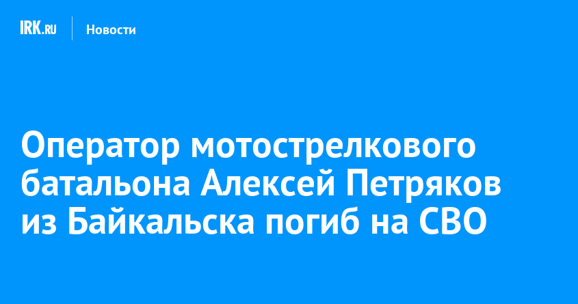 Оператор мотострелкового батальона Алексей Петряков из Байкальска погиб при выполнении боевого задания в зоне специальной военной операции. Ему был 31 год, сообщил в телеграм-канале глава МО Василий Темгеневский.