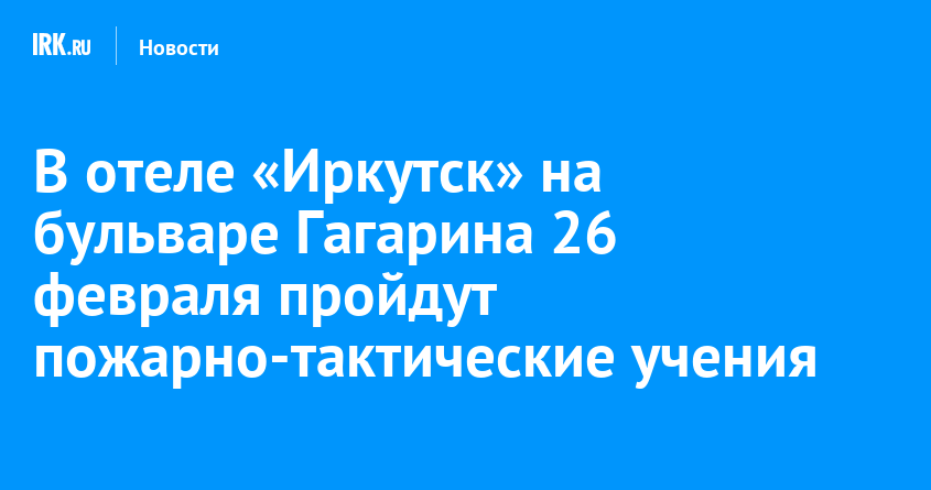 В отеле «Иркутск» 26 февраля 2026 года проведут пожарно-тактические учения. Гостиница расположена на бульваре Гагарина, сообщает пресс-служба ГУ МЧС России по Иркутской области. Начало — в 11:30.