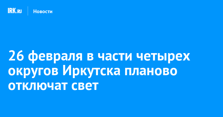 Днем 26 февраля часть Иркутска останется без электроснабжения. Специалисты проведут неотложные работы на сетях в Ленинском, Октябрьском, Правобережном и Свердловском округах, сообщается в телеграм-канале «Свет38»