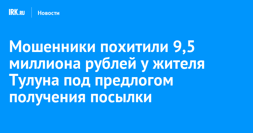 74-летний житель Тулуна стал жертвой мошенников. Аферисты обманули его под предлогом получения посылки. В итоге пенсионер лишился свыше 9,5 миллиона рублей, сообщили в пресс-службе ГУ МВД по Иркутской области.