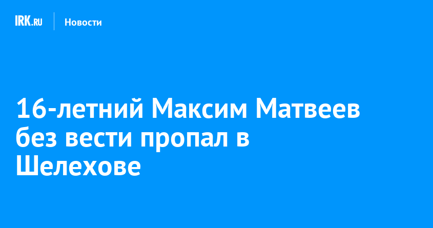 Сотрудники полиции в Шелехове разыскивают без вести пропавшего Максима Матвеева. В дежурную часть обратилась мать 16-летнего подростка. Она рассказала, что ее сын ушел из дома, расположенного в СНТ «Восточный Сибиряк», и не вернулся, сообщили в пресс-службе ГУ МВД по Иркутской области.