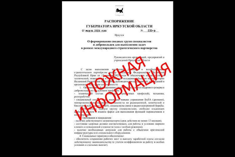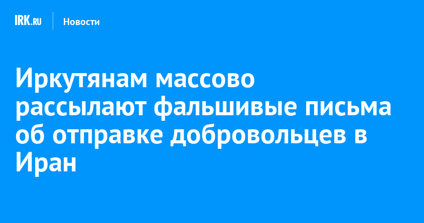 Неизвестные отправляют фейковые письма об отправке добровольцев в Иран, маскируясь под сотрудников аппарата правительства Иркутской области. Сообщения с подозрительными вложениями уже получили жители Приангарья и редакция IRK.ru.