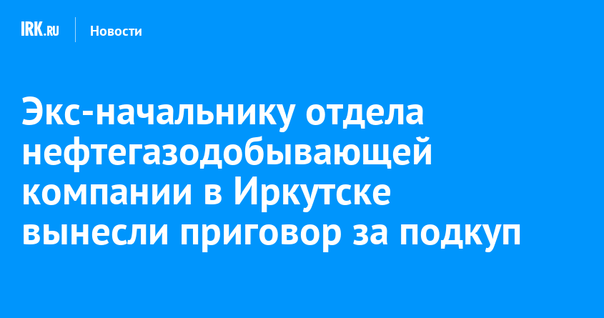 Куйбышевский районный суд Иркутска вынес приговор бывшему начальнику производственно-технической службы нефтегазодобывающей компании за коммерческий подкуп и легализацию имущества. 34-летнему злоумышленнику назначили 2,5 года лишения свободы с отбыванием в колонии строгого режима со штрафом в 50 тысяч рублей, сообщили в пресс-службах СУ СКР, ГУ МВД по региону и прокуратуры Иркутской области.