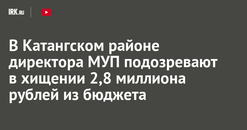 Четвертый отдел по расследованию особо важных дел СУ СК России по Иркутской области возбудил уголовное дело в отношении директора муниципального унитарного предприятия в Катангском районе. Руководитель подозревается в мошенничестве в особо крупном размере и покушении на него, сообщили в пресс-службе СУ СКР по Иркутской области.