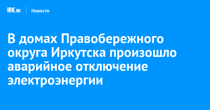 9 марта в 17:00 произошло частичное отключение электроэнергии в Правобережном округе Иркутска. Под отключение попала часть домов на улицах Баррикад, Декабристов, Динамо, Латвийская, Напольная, Писарева, Ремесленная, Учительский.