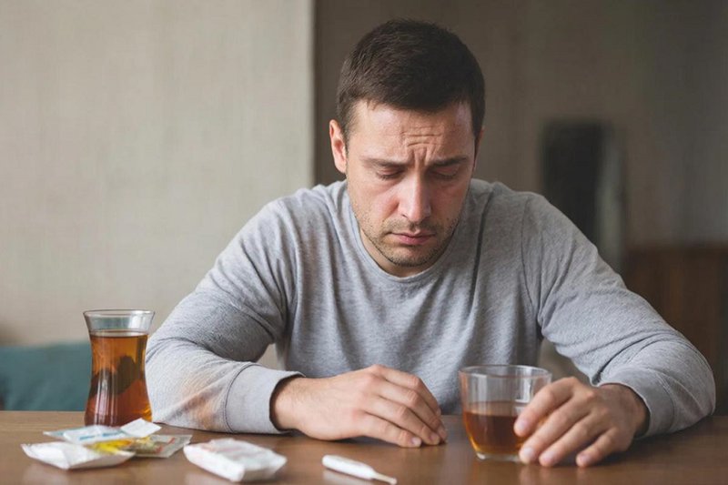 Болеющий гриппом человек. Фото сгенерировано с помощью нейросети GigaChat