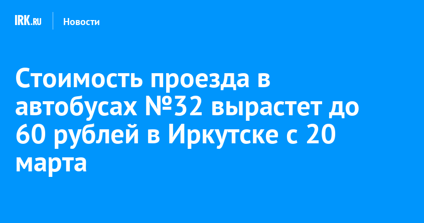 С 20 марта в Иркутске изменится стоимость проезда в муниципальном автобусе №32 «Центральный рынок — микрорайон Зеленый». Тариф будет зависеть от времени суток: днем (до 20:00) проезд обойдется пассажирам в 50 рублей, а вечером (после 20:00) — в 60 рублей.
