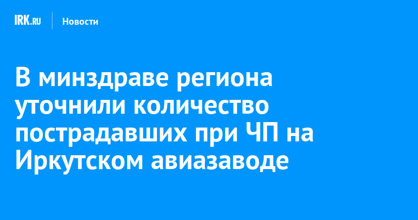 В министерстве здравоохранения Иркутской области уточнили количество пострадавших при ЧП, произошедшем на Иркутском авиационном заводе днем 12 марта. Травмы получили семь человек, сообщил в телеграм-канале губернатор Иркутской области Игорь Кобзев.