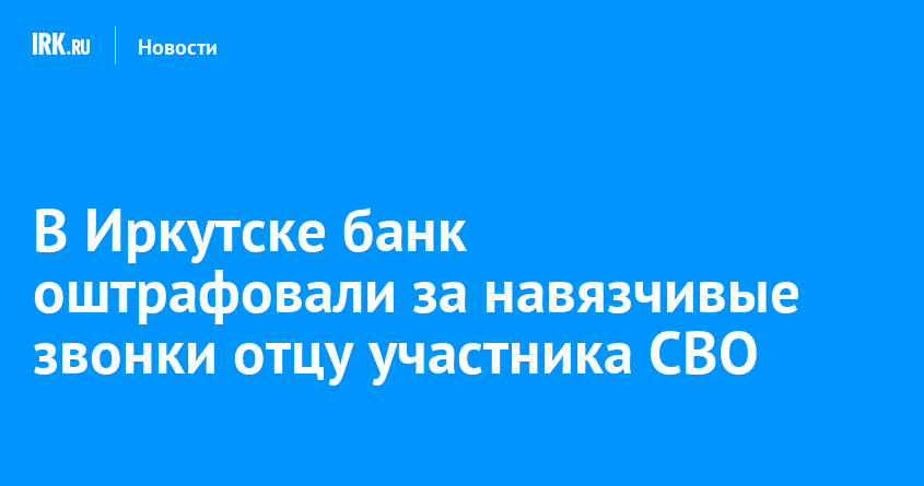Сотрудники банка требовали от иркутянина погасить кредит сына даже после официального подтверждения его гибели на спецоперации. Остановить звонки удалось только после вмешательства судебных приставов и назначения штрафа в 300 тысяч рублей, сообщает пресс-служба регионального ФССП.